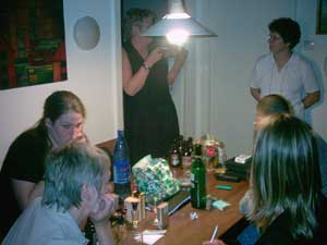 ![]() Bei meiner Mutter - Im Vordergrund Hildegard mit Ihren Töchtern Helle und Bente, im Hintergrund meine Cousinen Claudia ( Tochter des verstorbenen Bruders Klaus meiner Mutter ) und Sabine ( Tochter des verstorbenen Bruders Hermann meiner Mutter ) |